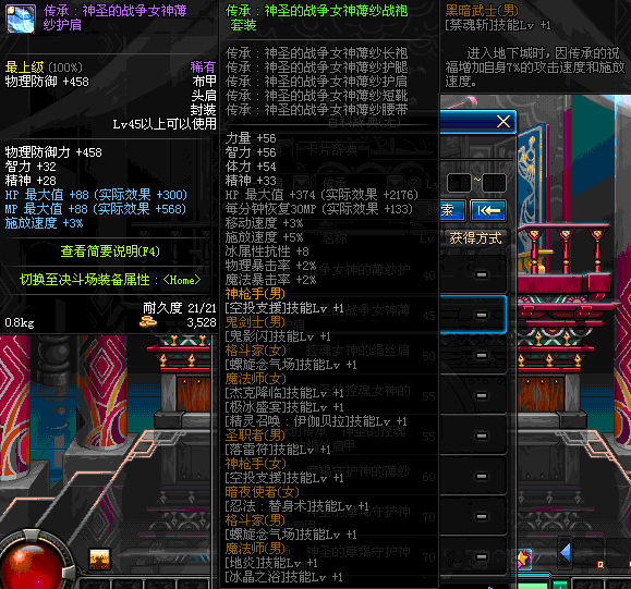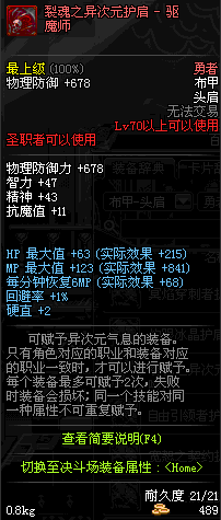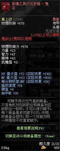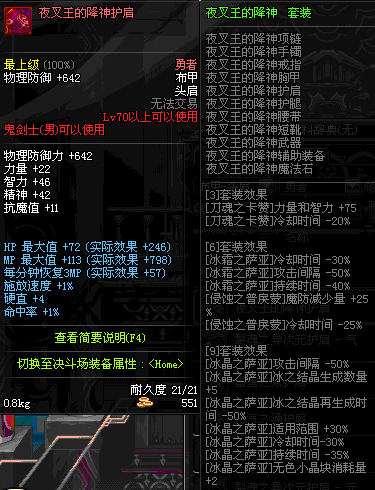 | 辅助装备: | 全职业 鬼剑士 女鬼剑 女格斗 男格斗 神枪手 女枪手 魔法师 男法师 圣职者 暗夜使者 守护者 |