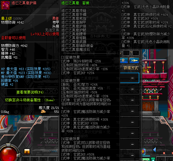 | 70 | 圣物 :荣耀的摩羯守护神的薄纱肩甲 | *Lv70~76普通地下城怪物掉落 |