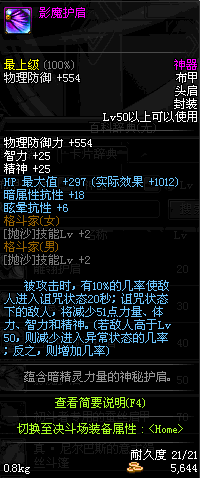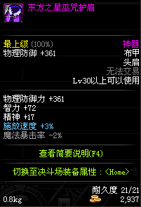 | 50 | 影魔护肩 | *Lv50~56普通地下城怪物掉落 *在加百利的神秘商店购买 |
