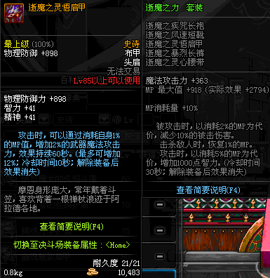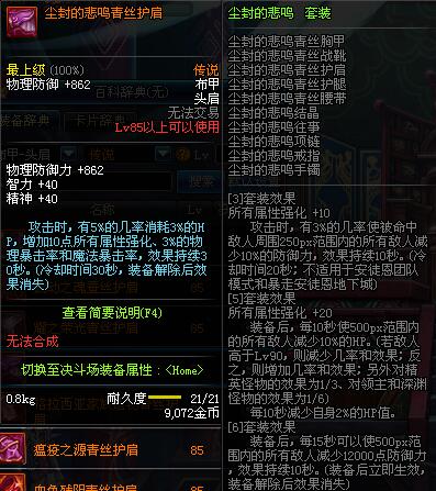 | 85 | 逝魔之灵悟肩甲 | *Lv84~91深渊地下城怪物掉落 | 逝魔之力 套装 | |
