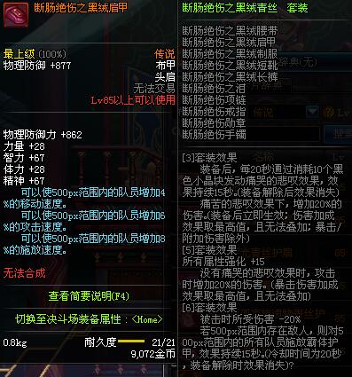 | 85 | 断肠绝伤之黑绒肩甲 | *昨日之巴斯顿 掉落 (在远古地下城里出没。) *从NPC鲁特的物品店出售的[断肠绝伤防具礼盒]中获得 |