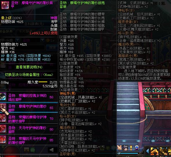 | 65 | 圣物 :摩羯守护神的薄纱肩甲 | *Lv65~71普通地下城怪物掉落 |