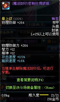 | 25 | (魔法封印)密制丝绸披肩 | *Lv24~31普通地下城怪物掉落 *在NPC阿尔伯特·伯恩斯坦的物品店购买 *完成[斯卡迪女王的指点]任务 *使用Lv24~31怪物掉落的设计图进行制作 |