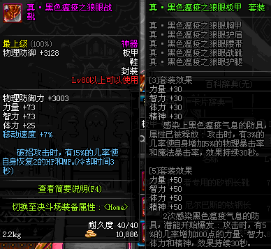 | 80 | 真 · 黑色瘟疫之狼眼战靴 | *设计图(70LV以上普通地下城 登场的NPC加百利 出售) *黑色瘟疫之狼眼战靴 → 用远古神器装备进化书升级(NPC船长鲁特 出售) |