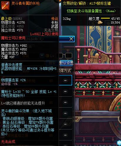 | 50 | 精铸的炫光长枪 | *领主-光之城主赛格哈特 掉落(极光幻境) *在NPC敏泰的物品店购买(阿拉德陨石×285) |