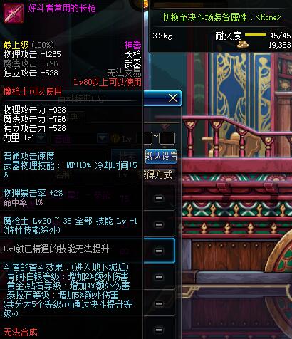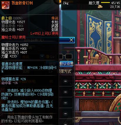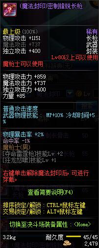 | 80 | (魔法封印)密制锋锐长枪 | *Lv80~86普通地下城怪物掉落 |
