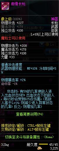 | 45 | 圣物 :冥火精灵长枪 | *Lv45~51普通地下城怪物掉落 |