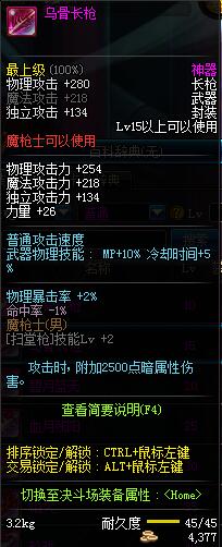 | 15 | 乌骨长枪 | *Lv13~21普通地下城怪物掉落 *在加百利的神秘商店购买 |