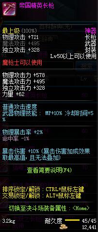| 50 | 帝国精英长枪 | *Lv50~56普通地下城怪物掉落 *在加百利的神秘商店购买 |