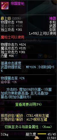 | 55 | 帝国皇枪 | *Lv53~61普通地下城怪物掉落 *在加百利的神秘商店购买 |