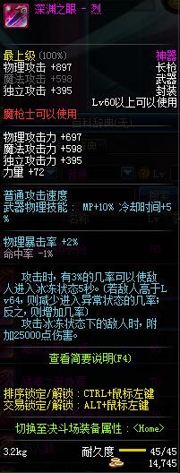 | 60 | 深渊之眼 - 烈 | *Lv58~66普通地下城怪物掉落 *在加百利的神秘商店购买 |