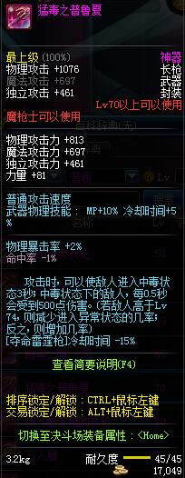 | 70 | 圣物 :冥月精灵长枪 | *Lv70~76普通地下城怪物掉落 |