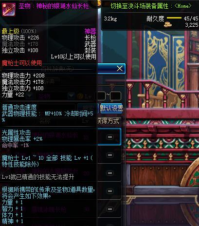 | 10 | 圣物 :神秘的银湖水仙长枪 | *Lv8~14普通地下城怪物掉落 |