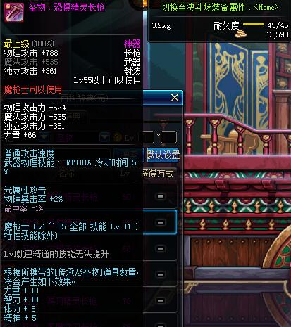 | 55 | 圣物 :恐惧精灵长枪 | *Lv53~61普通地下城怪物掉落 |