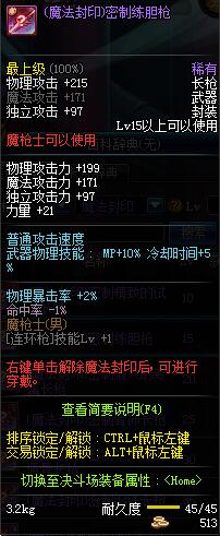 | 15 | (魔法封印)密制练胆枪 | *Lv13~21普通地下城怪物掉落 *完成[专职贺礼]任务 |