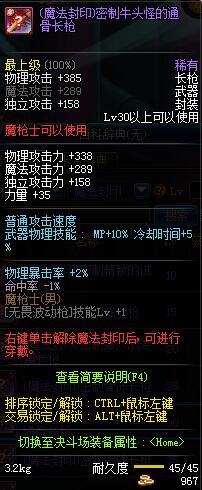 | 30 | 圣物 :血魂冰魄长枪 | *Lv29~36普通地下城怪物掉落 |