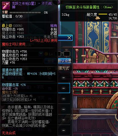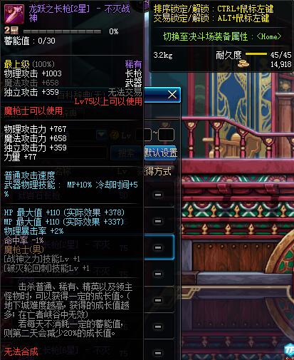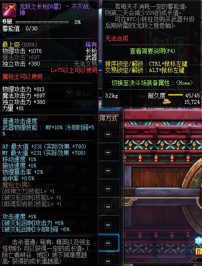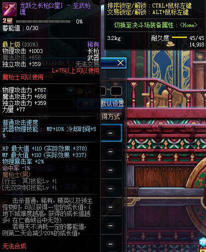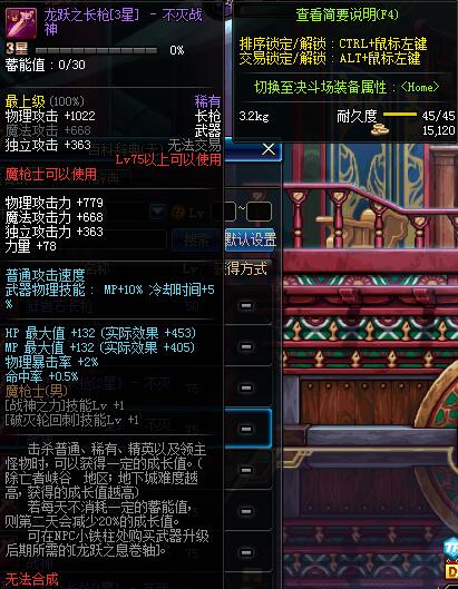 | 75 | 龙跃之长枪[2星] - 不灭战神 | *完成二次觉醒任务后可以从NPC小铁柱处获得此道具。 | ||
