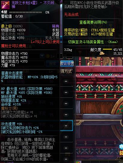 | 75 | 龙跃之长枪[4星] - 不灭战神 | *完成二次觉醒任务后可以从NPC小铁柱处获得此道具。 | ||