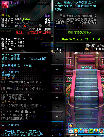 | 50 | 狱岩石之棒 | *觉醒任务 - 死亡之塔30层任务奖励 | ||