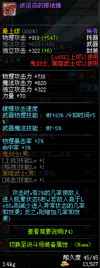 | 50 | 戾眼灭魂槌 | *Lv50~56普通地下城怪物掉落 *在加百利的神秘商店购买 |
