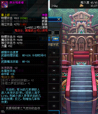 | 40 | 戾冰鸣泉棒 | *Lv39~46普通地下城怪物掉落 *在加百利的神秘商店购买 |