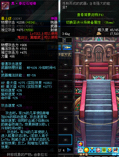 | 72 | 真·泰拉石短棒 | * 设计图(70LV以上普通地下城 登场的NPC加百利 出售) *泰拉石短棒 → 用远古神器装备进化书升级(NPC船长鲁特 出售) |