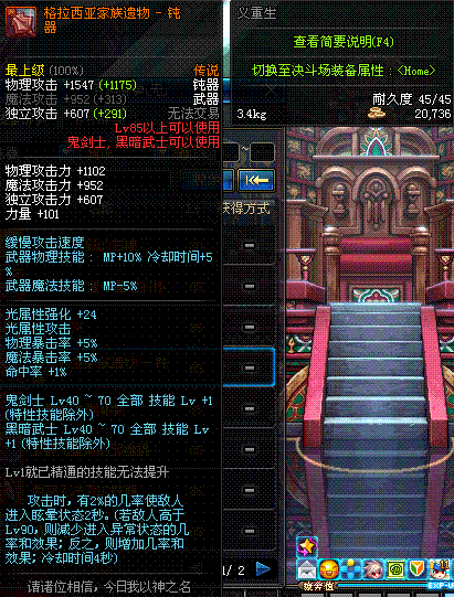 | 辅助装备: | 全职业 鬼剑士 女鬼剑 女格斗 男格斗 神枪手 女枪手 魔法师 男法师 圣职者 暗夜使者 守护者 |