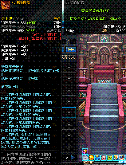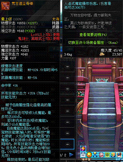 | 45 | 圣物 : 冥火精灵之龙骨棒 | *Lv45~51普通地下城怪物掉落 |
