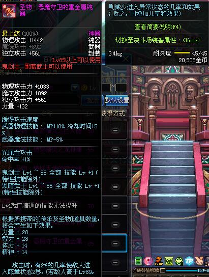 | 85 | 圣物 : 恶魔守卫的重金属钝器 | *Lv85~91普通地下城怪物掉落 | ||