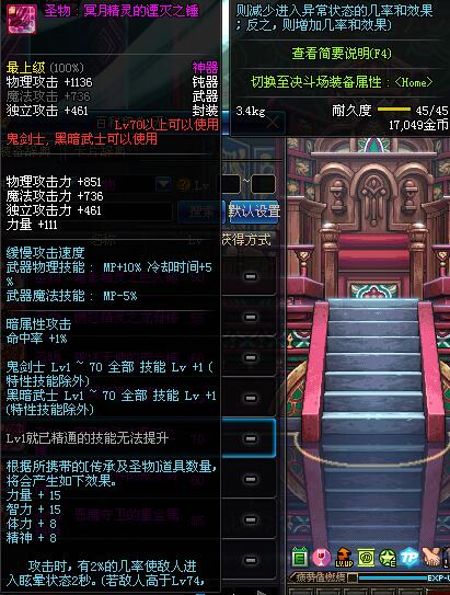 | 70 | 圣物 : 冥月精灵的湮灭之锤 | *Lv70~76普通地下城怪物掉落 |