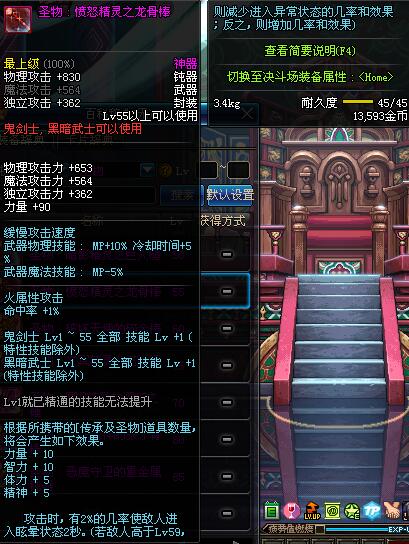 | 55 | 圣物 : 愤怒精灵之龙骨棒 | *Lv53~61普通地下城怪物掉落 |