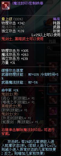 | 30 | 恶魔破天棒 | *Lv29~36普通地下城怪物掉落 *在加百利的神秘商店购买 |