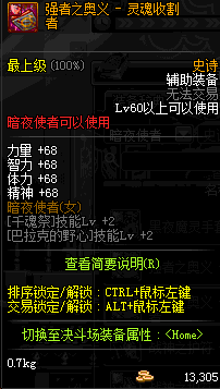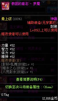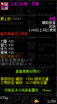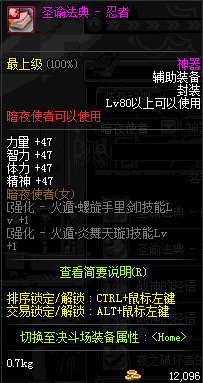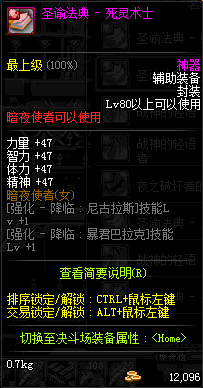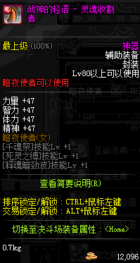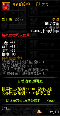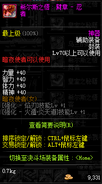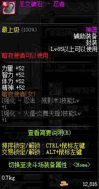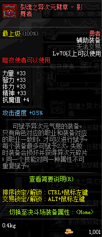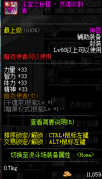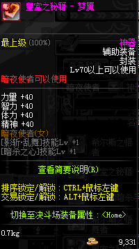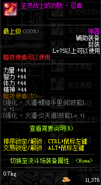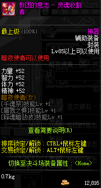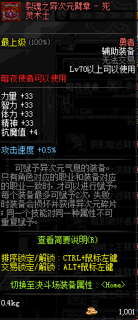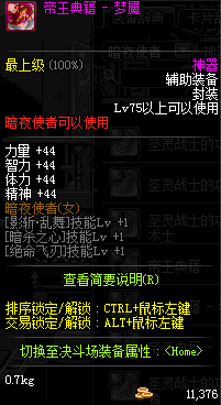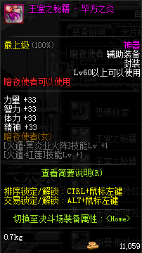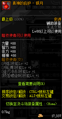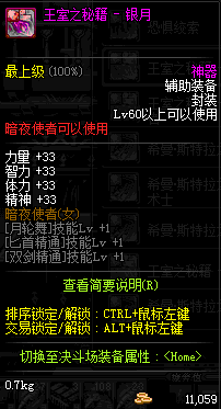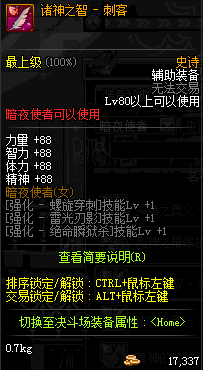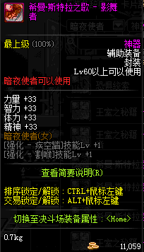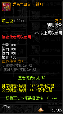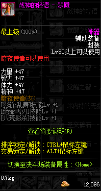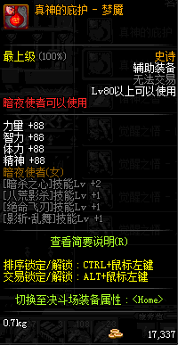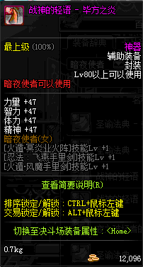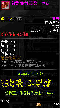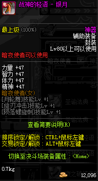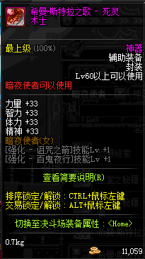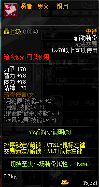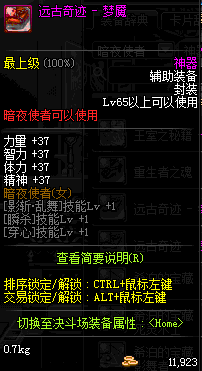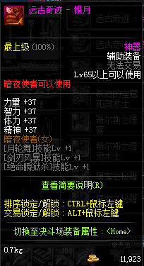| 辅助装备: | 全职业 鬼剑士 女鬼剑 女格斗 男格斗 神枪手 女枪手 魔法师 男法师 圣职者 暗夜使者 守护者 |