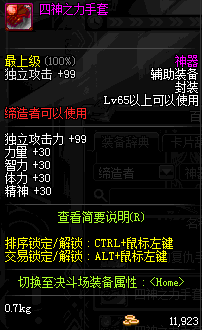 | 辅助装备: | 全职业 鬼剑士 女鬼剑 女格斗 男格斗 神枪手 女枪手 魔法师 男法师 圣职者 暗夜使者 守护者 |