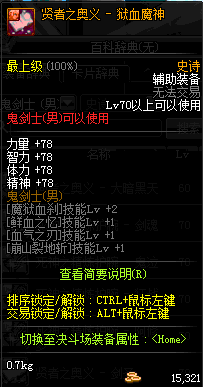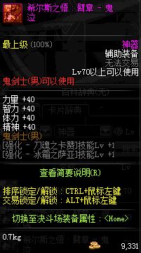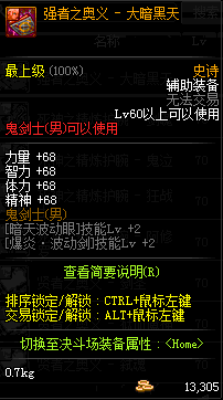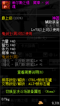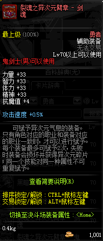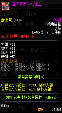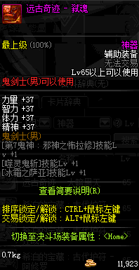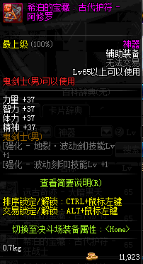 | 辅助装备: | 全职业 鬼剑士 女鬼剑 女格斗 男格斗 神枪手 女枪手 魔法师 男法师 圣职者 暗夜使者 守护者 |