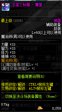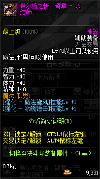 | 辅助装备: | 全职业 鬼剑士 女鬼剑 女格斗 男格斗 神枪手 女枪手 魔法师 男法师 圣职者 暗夜使者 守护者 |
