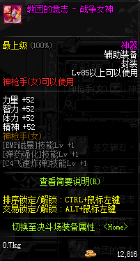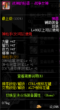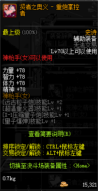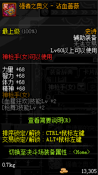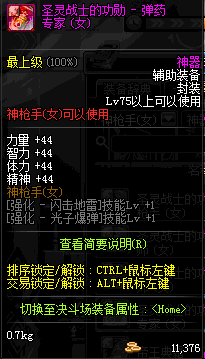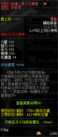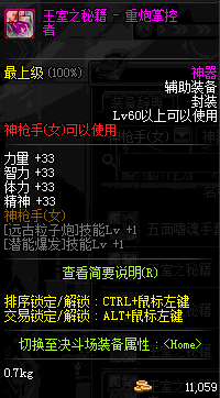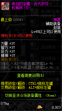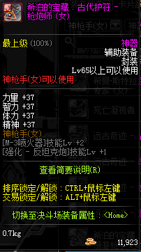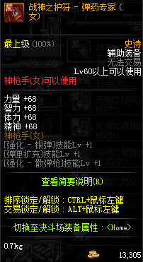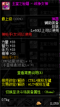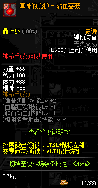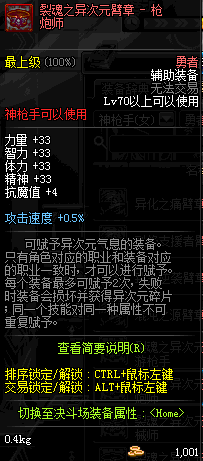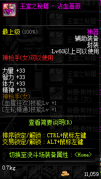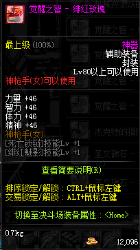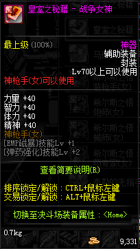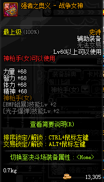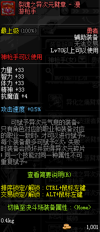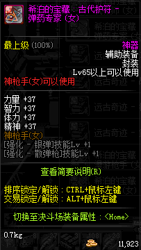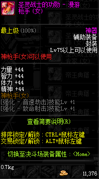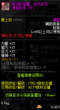 | 辅助装备: | 全职业 鬼剑士 女鬼剑 女格斗 男格斗 神枪手 女枪手 魔法师 男法师 圣职者 暗夜使者 守护者 |