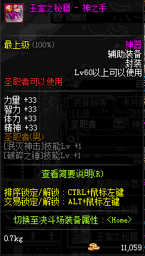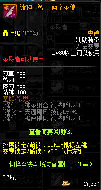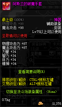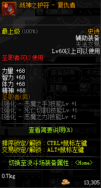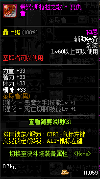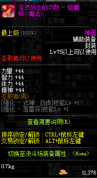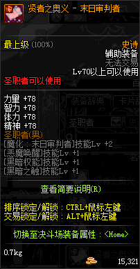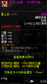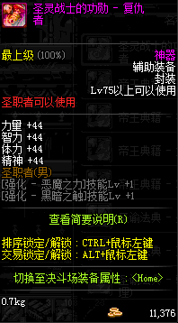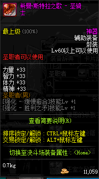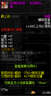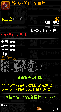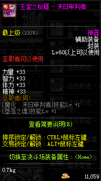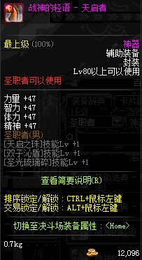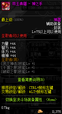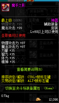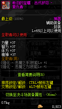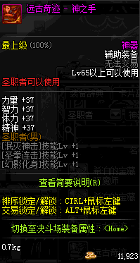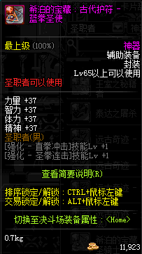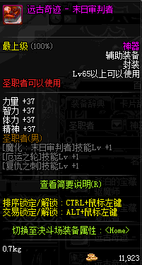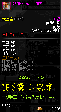 | 辅助装备: | 全职业 鬼剑士 女鬼剑 女格斗 男格斗 神枪手 女枪手 魔法师 男法师 圣职者 暗夜使者 守护者 |