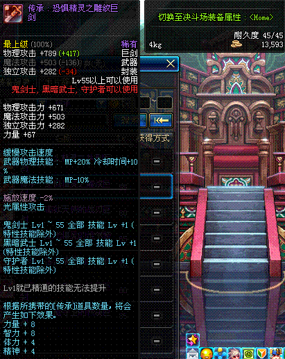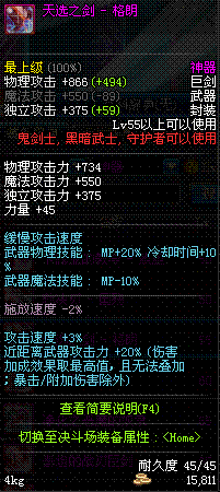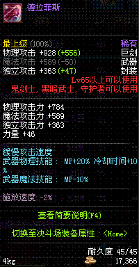 | 45 | 圣物 : 玄月精灵之雕纹巨剑 | *Lv45~51普通地下城怪物掉落 |