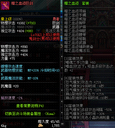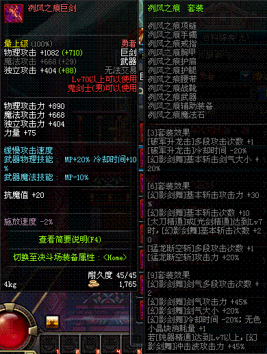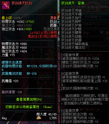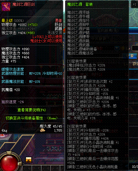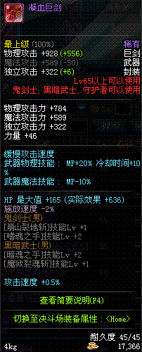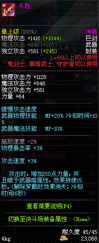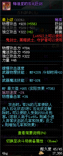 | 65 | 泰坦的战刃巨剑 | *Lv65~71普通地下城怪物掉落 *在加百利的神秘商店购买 |