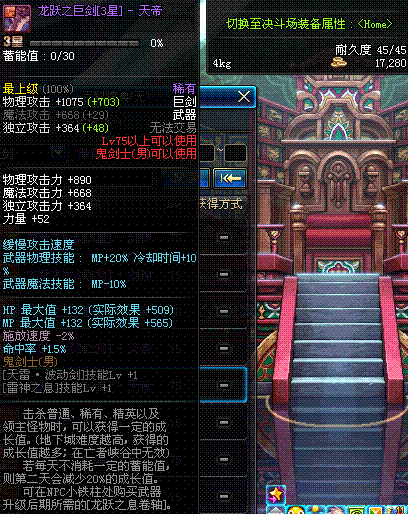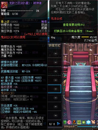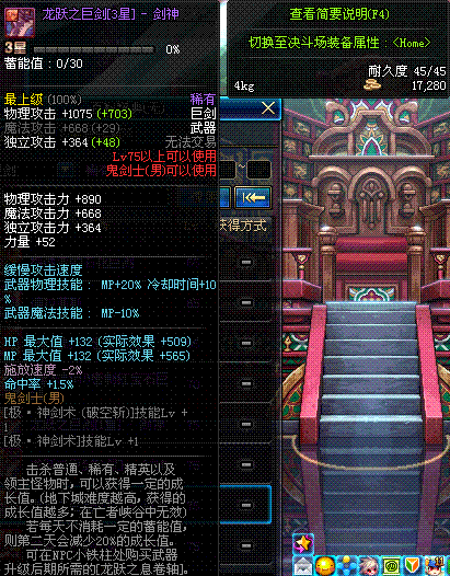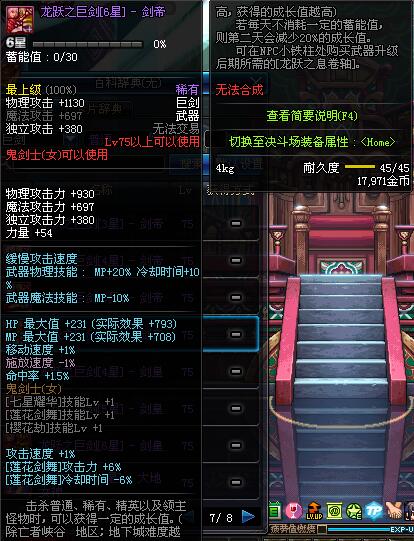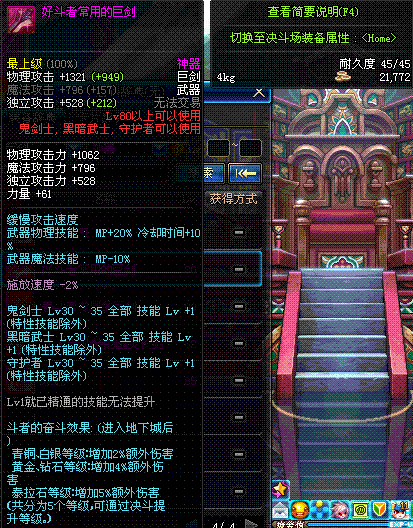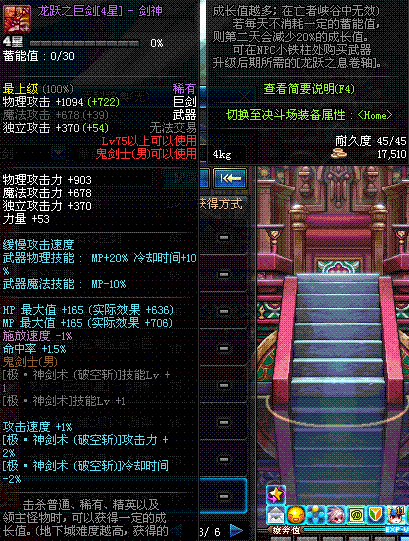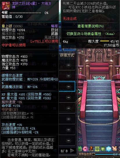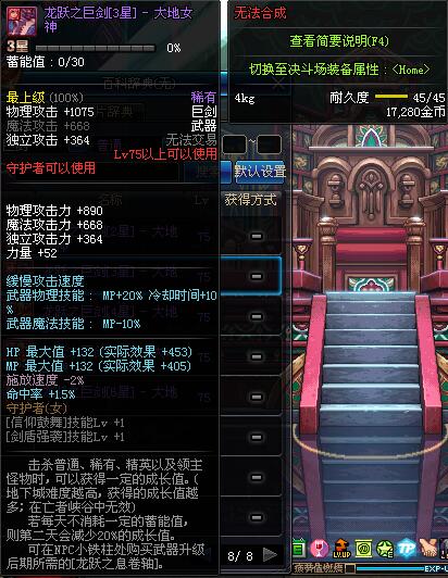 | 72 | 真·泰拉石巨剑 | * 设计图(70LV以上普通地下城 登场的NPC加百利 出售) *泰拉石巨剑 → 用远古神器装备进化书升级(NPC船长鲁特 出售) |