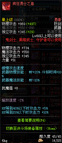 | 45 | 萨乌塔的兽角巨剑 | *牛头王萨乌塔 掉落(地下城:冰刺庭院) *在NPC敏泰的物品店购买(阿拉德陨石×240) |