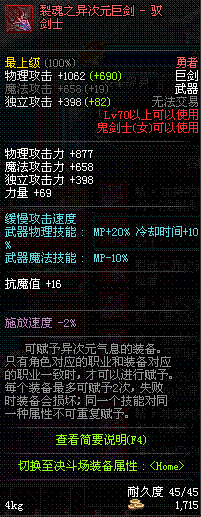 | 70 | 裂魂之异次元巨剑 – 剑魂 | *领主 掉落 (地下城:虚无之境, 黑色大地, 巴卡尔之城) | ||