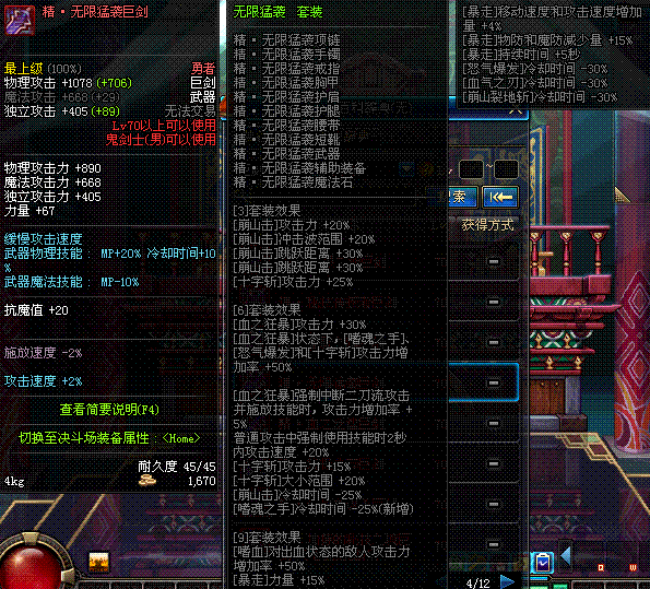 | 70 | 裂魂之异次元巨剑 – 狂战士 | *领主 掉落 (地下城:虚无之境, 黑色大地, 巴卡尔之城) | ||