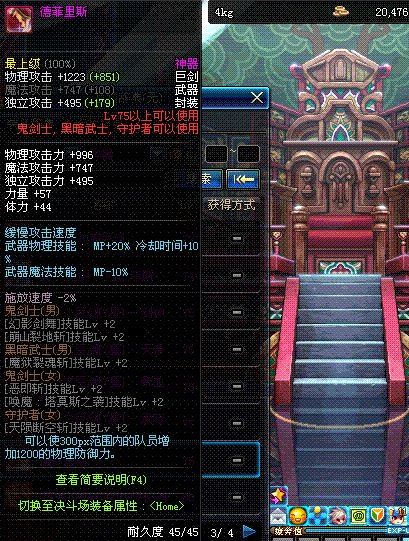 | 45 | 罗特斯的足灵剑 | *长脚罗特斯 掉落(地下城: 罗特斯的宫殿) *伊莎杜拉 出售(阿拉德陨石×240) |
