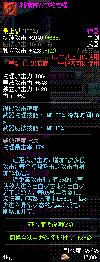 | 45 | 斩铁剑 | *Lv45~51普通地下城怪物掉落 *在加百利的神秘商店购买 |