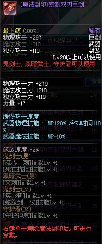 | 20 | (魔法封印)密制双刃巨剑 | *Lv19~26普通地下城怪物掉落 *完成[奴役蘑菇人的巨型蚂蚁]任务 *使用Lv19~26怪物掉落的设计图进行制作 |