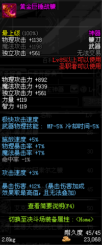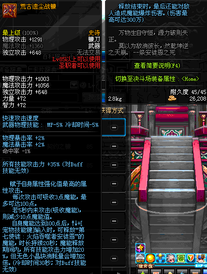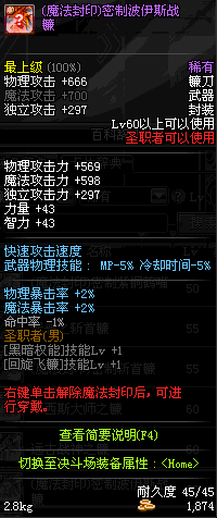 | 辅助装备: | 全职业 鬼剑士 女鬼剑 女格斗 男格斗 神枪手 女枪手 魔法师 男法师 圣职者 暗夜使者 守护者 |