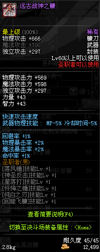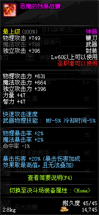| 60 | 恶魔的残暴战镰 | *Lv58~66普通地下城怪物掉落 *在加百利的神秘商店购买 |