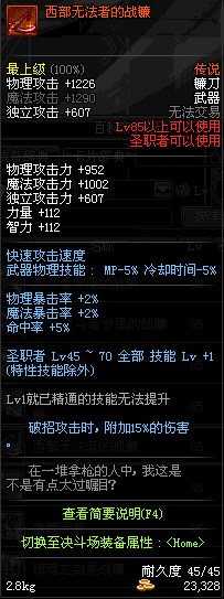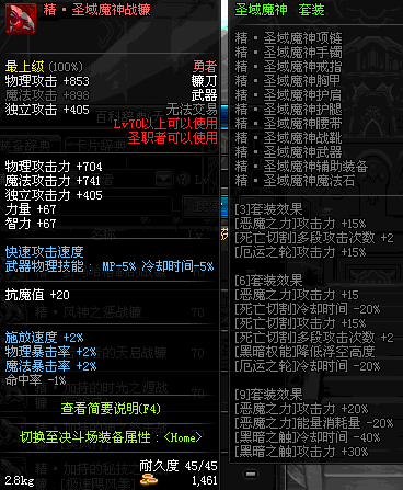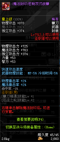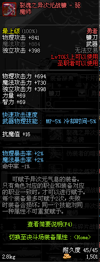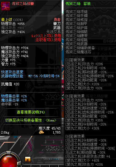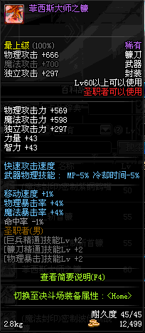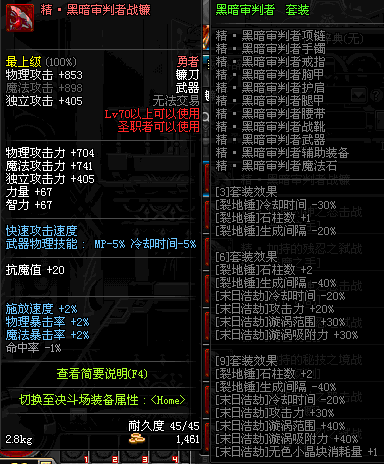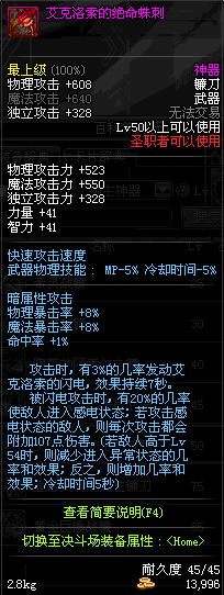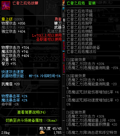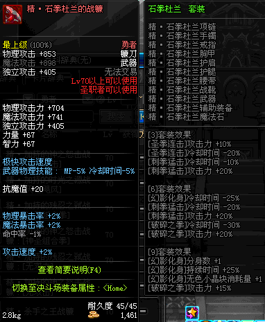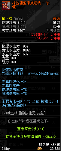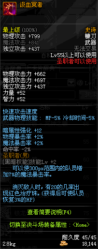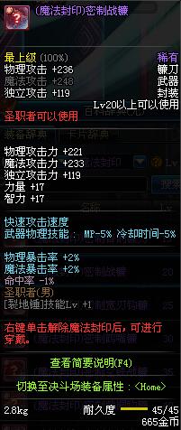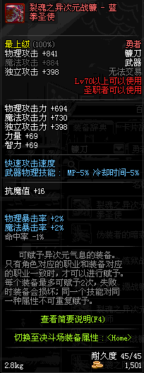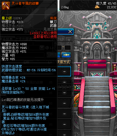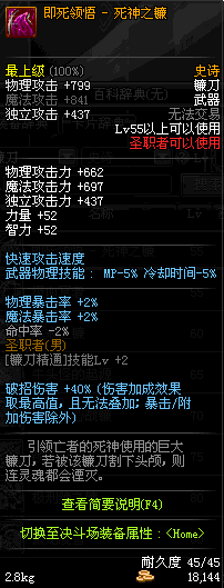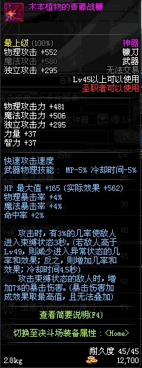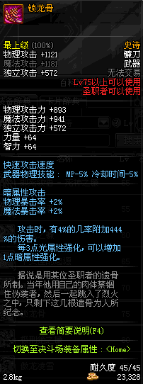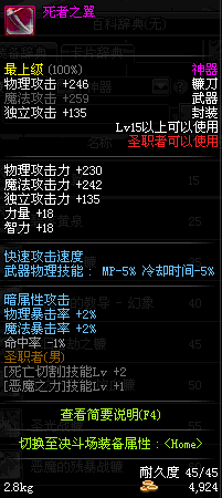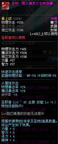 | 45 | 圣物 : 冥火精灵之玄铁战镰 | *Lv45~51普通地下城怪物掉落 |